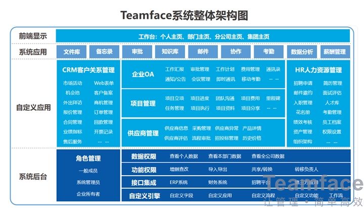 疫情之下,遠程辦公全面助力企業復工復產。該事實證明,引進一款專業的管理系統能夠為企業帶來極大的便利及好處。Teamface一體化企業管理平臺始終扮演著這樣的角色,以國際先進的企業管理理念+國際化前沿的科學技術,幫助企業高效落地數字化轉型,實現數字化管理,從而用數據驅動企業決策!